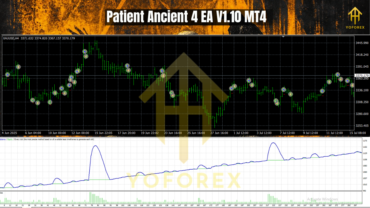 If you’re tired of noisy scalping bots and want a disciplined, swing-trading robot, the Patient Ancient 4 EA V1.10 MT4 is the answer. Optimized for gold on the H4 timeframe, it trades less often, but with greater accuracy and patience.
