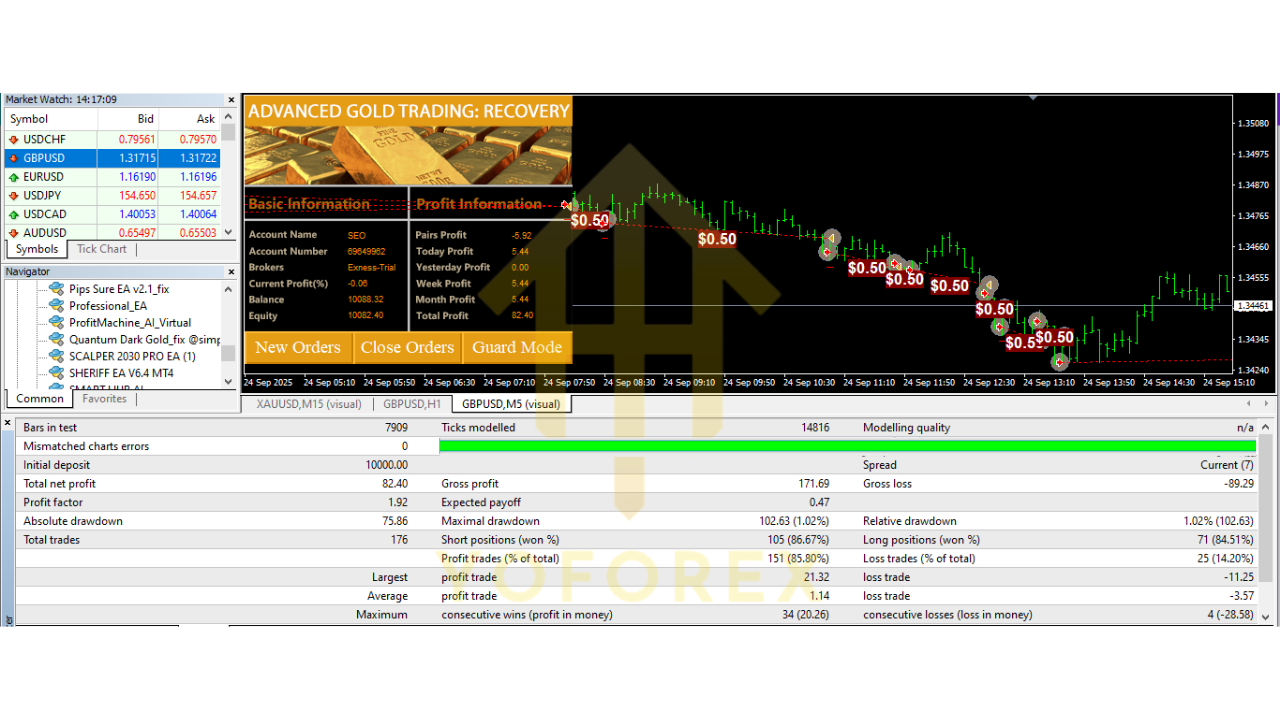And the best part? Sheriff EA doesn’t use dangerous stuff like martingale or big grid expansions. Everything is based on strict risk rules, clean entries, and rapid exits — something that actually makes sense for the gold market where mistakes can get expensive very quickly.