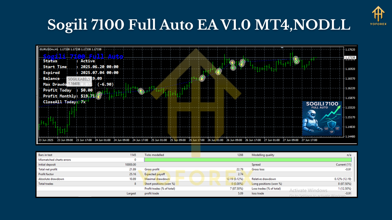In the dynamic world of forex trading, automation has become the edge many traders lean on to stay consistent, follow rules, and remove emotion from the hot seat. The Sogili 7100 Full Auto EA V1.0 for MT4 steps right into that gap. Designed for hands-off execution with sensible risk controls, it aims to help you capture intraday momentum and short-term swings on major pairs while you focus on bigger-picture decisions. In this review, we’ll unpack how it works, who it’s best for, and the practical settings to consider when you load it up on EURUSD, GBPUSD, and USDJPY (M15 or H1) with a minimum deposit of $500.