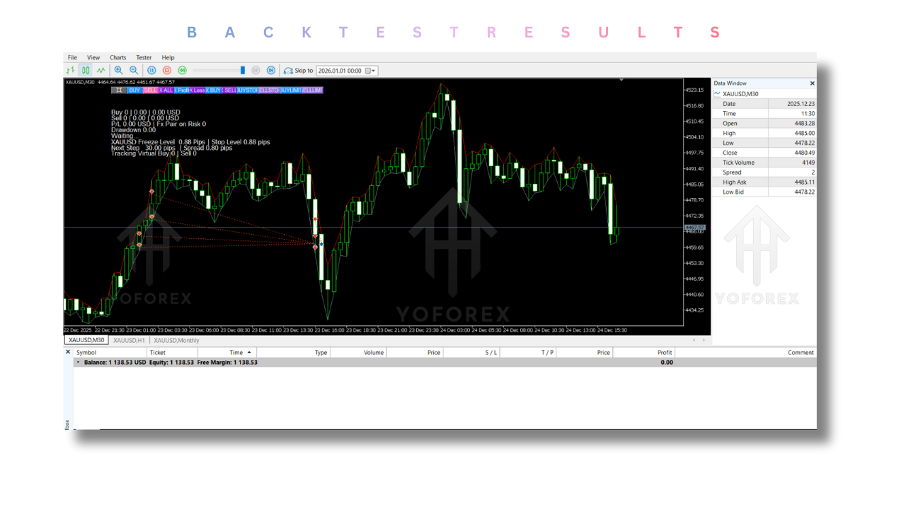 Instead, forward testing is the most reliable way to evaluate this EA. Traders should focus on drawdown behavior, recovery time, trade frequency, and margin usage rather than short-term profit figures.