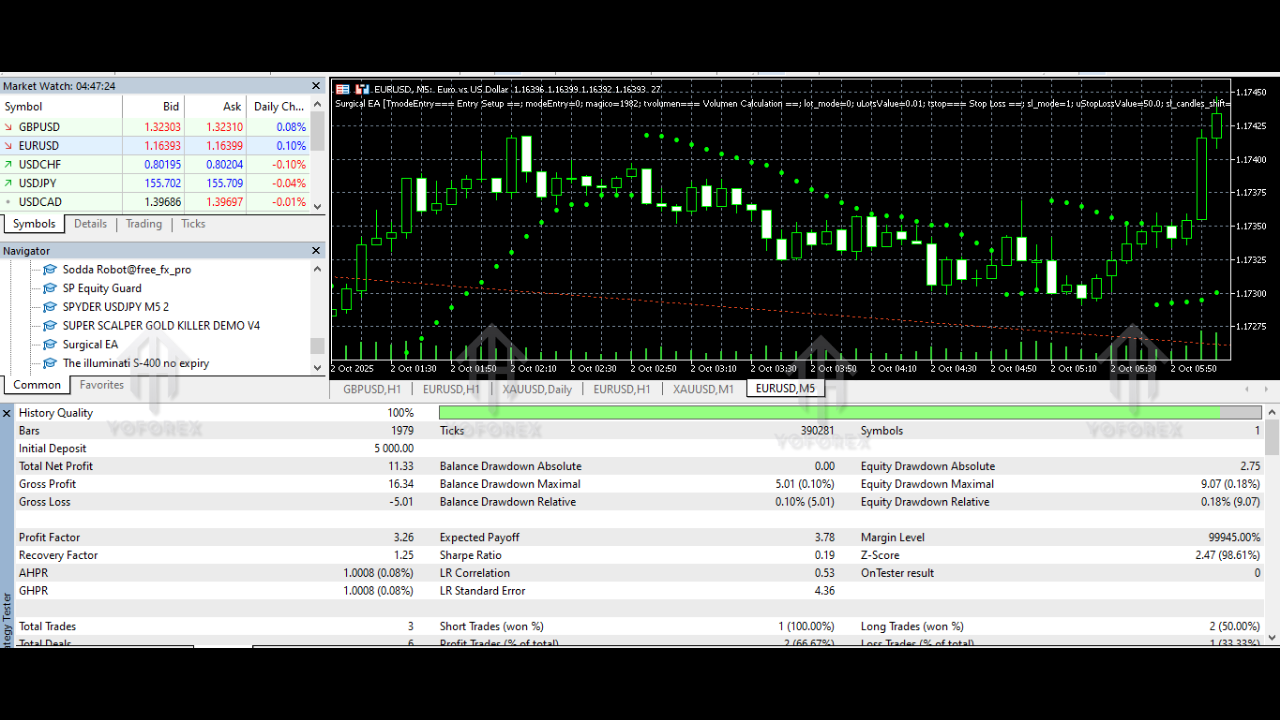 If your goal is consistent performance without the emotional stress of manual trading, Surgical EA V2.0 is a strong choice to add to your MT5 arsenal. Whether you’re testing on a demo or scaling to a funded account, this EA is built to adapt to high-liquidity price behavior and deliver stable returns.