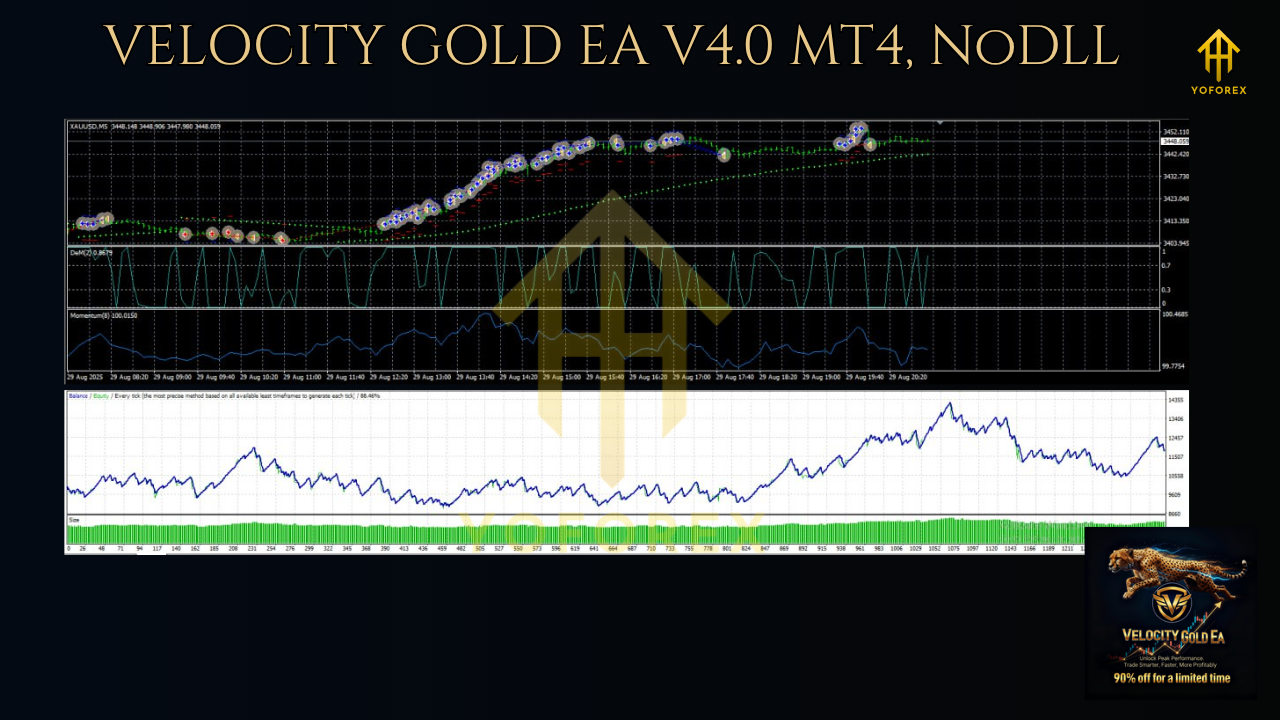 The Velocity Gold EA V4.0 MT4 is not just another automated trading tool; it’s a complete trading ecosystem built specifically for gold. Its algorithm is optimized to read volatility bursts, detect momentum shifts, and execute trades with precision during the most active market hours.