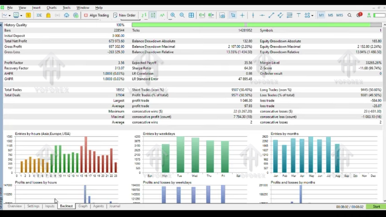 Backtests often show a smooth equity curve and strong performance during the London trading session, with minimal exposure during ranging market conditions.