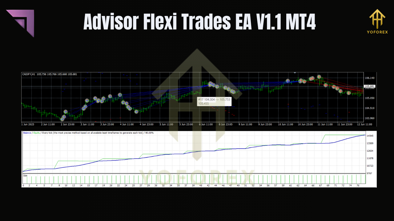 Advisor Flexi Trades EA V1.1 MT4 is a versatile, fully back-tested MT4 expert advisor designed to automate your forex strategy across major currency pairs. Unlike rigid bots tuned for a single pair, Flexi Trades EA supports EURUSD, GBPUSD, USDJPY (and any other pair you fancy), with a primary focus on M15 and H1 timeframes. It uses dynamic risk algorithms, market-structure analysis, and customizable filters to adapt in real time—so you won’t have to manually switch profiles when conditions change.