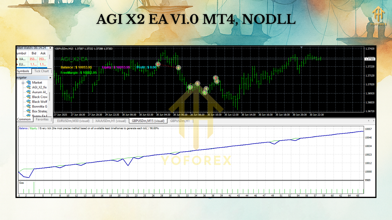 If you’ve been burned by “magic” robots that collapse when market conditions flip, you’ll like this. AGI X2 EA V1.0 MT4 isn’t a recycled martingale—it’s a next-gen AI-powered Expert Advisor designed to adapt as markets evolve. Built by YoForex and optimized for MetaTrader 4, it blends artificial intelligence with risk-first logic. The result? A free forex robot that can handle prop firm rules, retail accounts, and long-term trading sustainability.