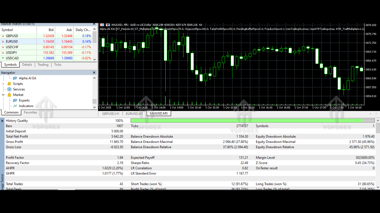 YoForex’s internal testing shows that Alpha AI EA V1.09 MT5 captures strong directional moves by analyzing smart money footprints rather than indicators alone.