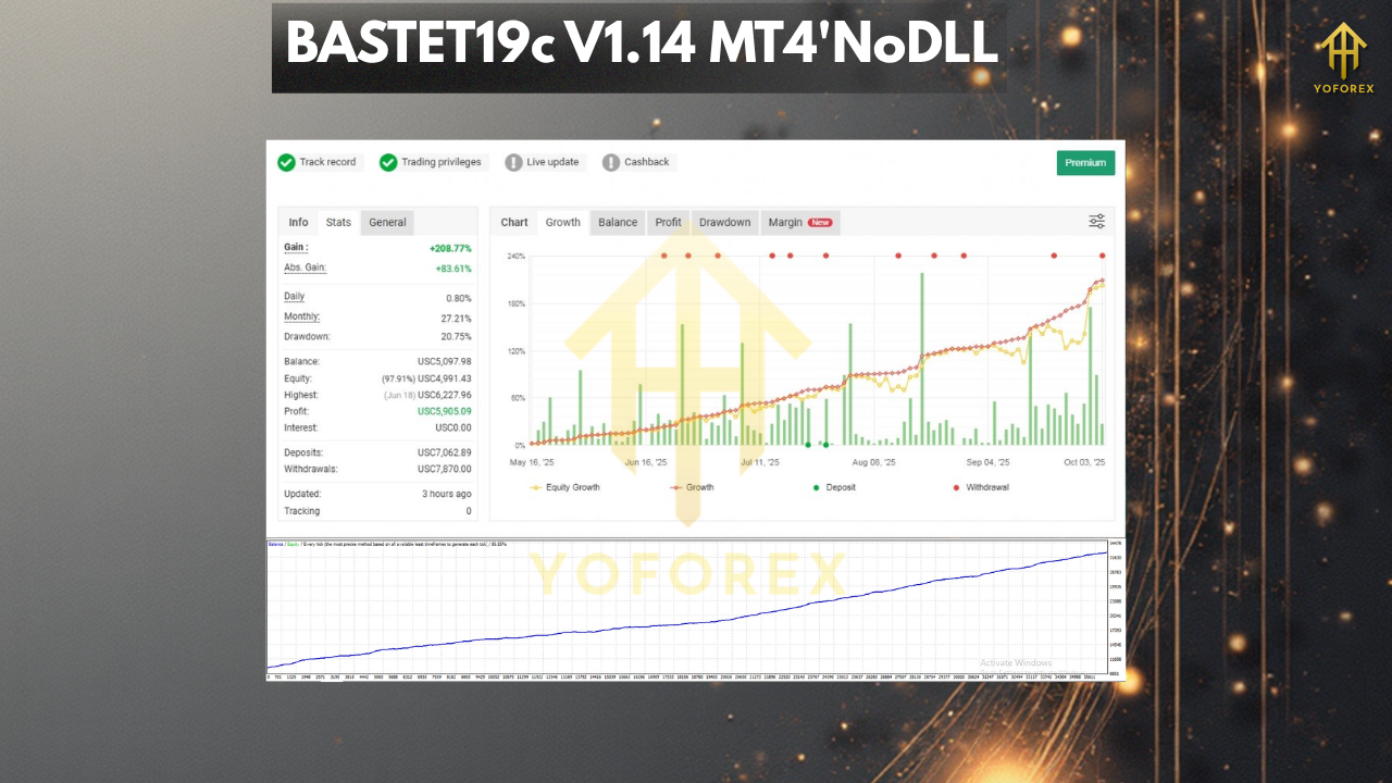 - Automation: BASTET19c EA automates the trading process, reducing the need for manual intervention and allowing traders to capitalize on market opportunities 24/5.