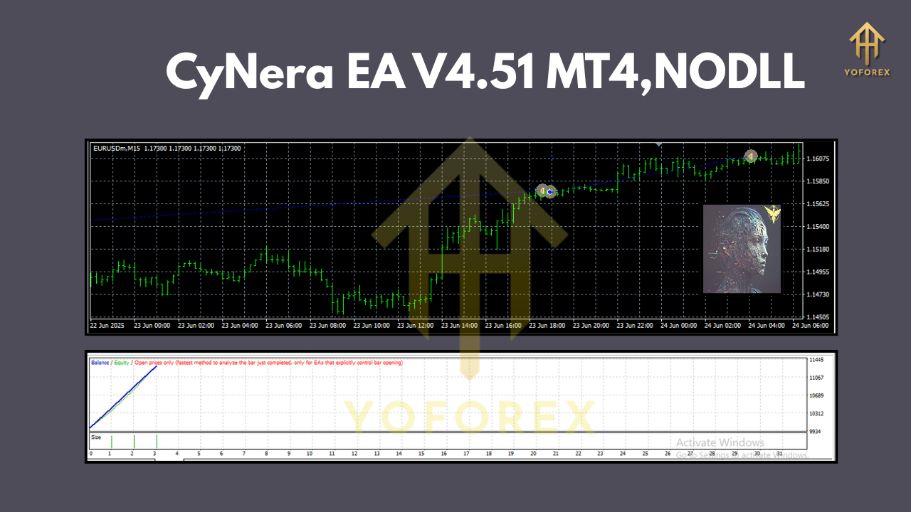 CyNera EA V4.51 is a MetaTrader 4-based Expert Advisor engineered for precision trading on gold (XAUUSD) and EURUSD pairs. Built by YoForex with data-driven strategies and AI-enhanced logic, this bot thrives on multi-timeframe signals, market volatility detection, and risk-adjusted entries.