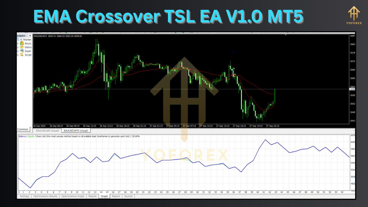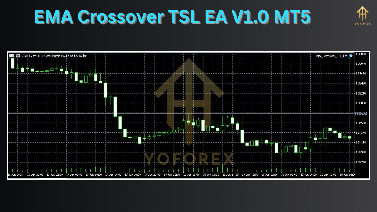 The EMA Crossover TSL EA V1.0 MT5 by YoForex harnesses the power of two exponential moving averages—one fast, one slow—to pinpoint trend shifts with precision. When the shorter EMA crosses above the longer one, the EA triggers a buy; when it crosses below, a sell is executed. What sets this EA apart is its integrated trailing stop loss (TSL), which continually adjusts your stop level as price moves in your favor, locking in profits and reducing downside risk.