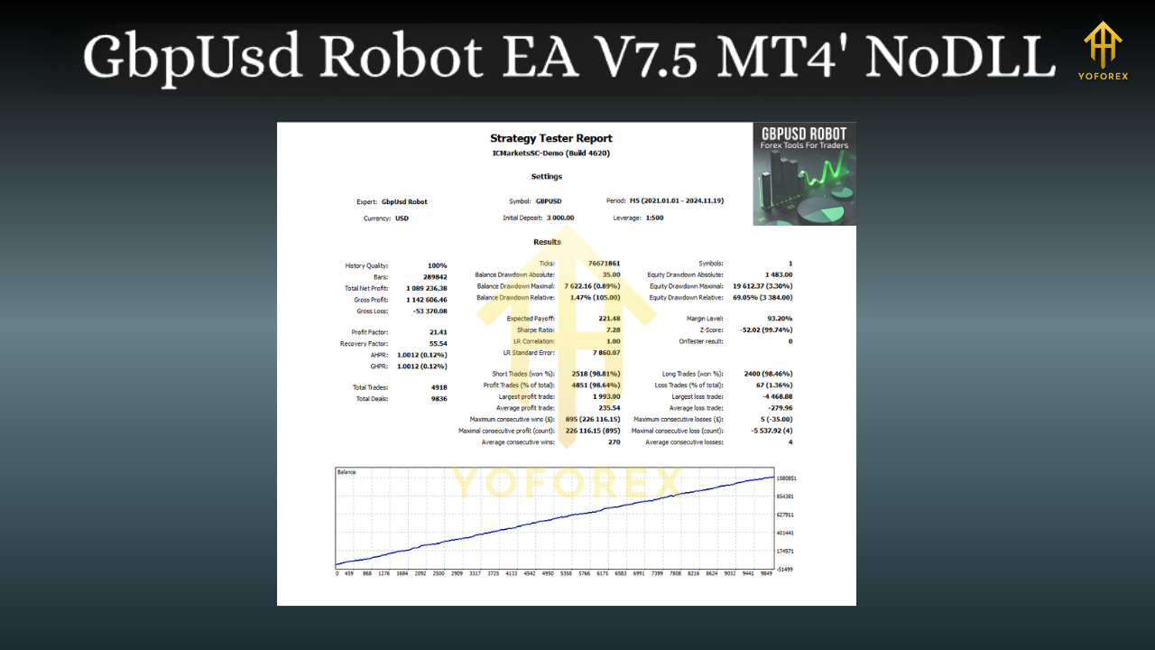 If you’re looking for a way to automate your GBPUSD trades with precision, consistency, and professional-grade strategies, then the GbpUsd Robot EA V7.5 MT4 is worth exploring. Designed for MetaTrader 4, this Expert Advisor (EA) is built to optimize trading in one of the most liquid and popular forex pairs – GBPUSD.