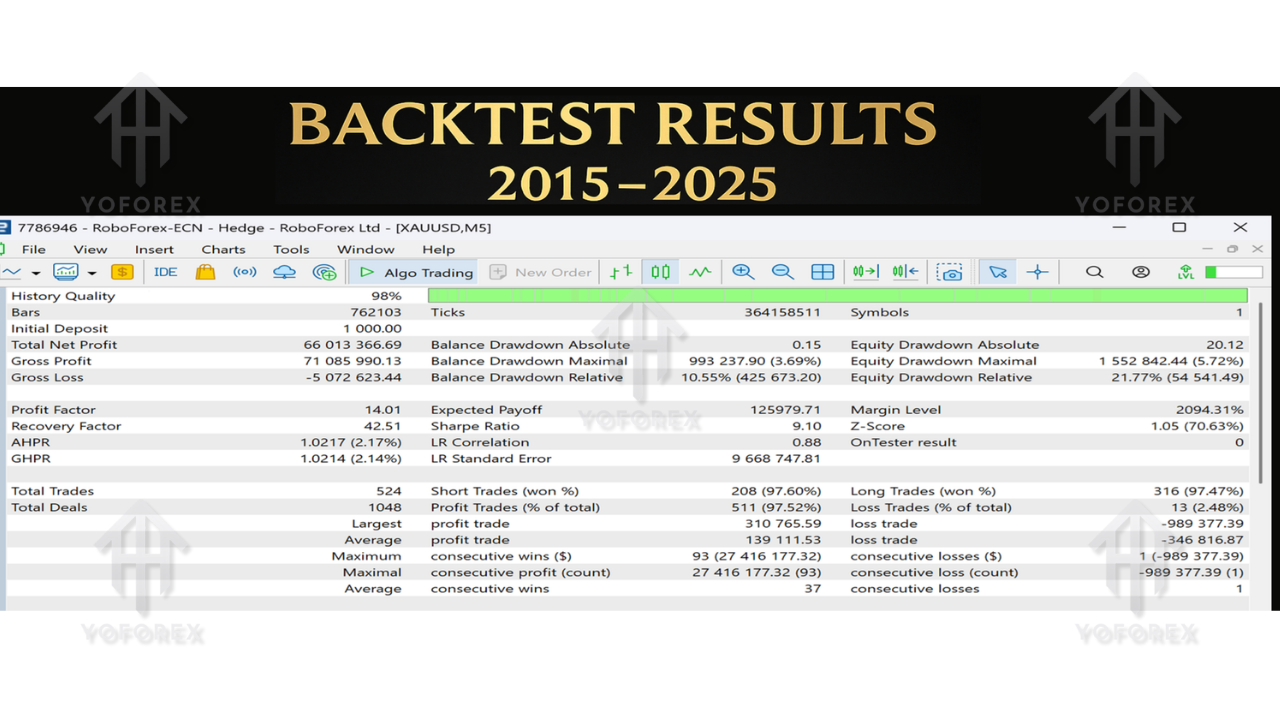 - ⭐ 3. High Win Rate Strategy: Backtests show the EA maintains a high accuracy rate by avoiding low-quality setups.