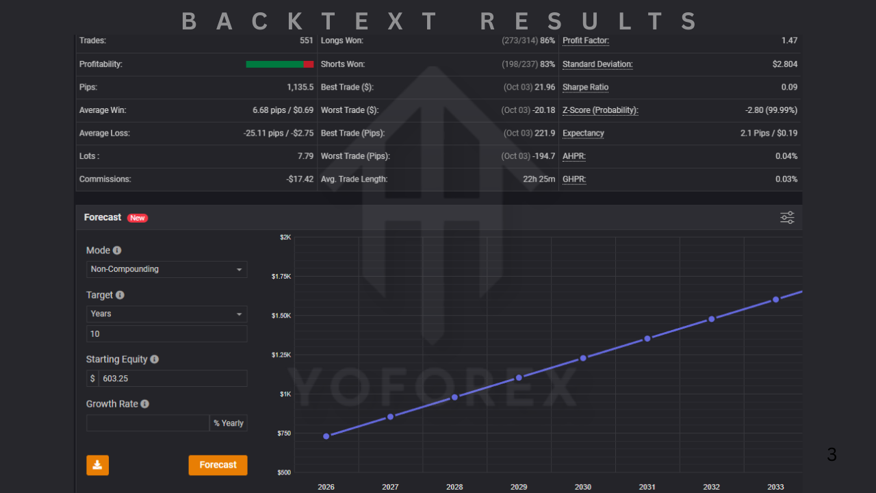 The EA reads the bigger picture trend using a combination of smoothed momentum filters and price action structure.