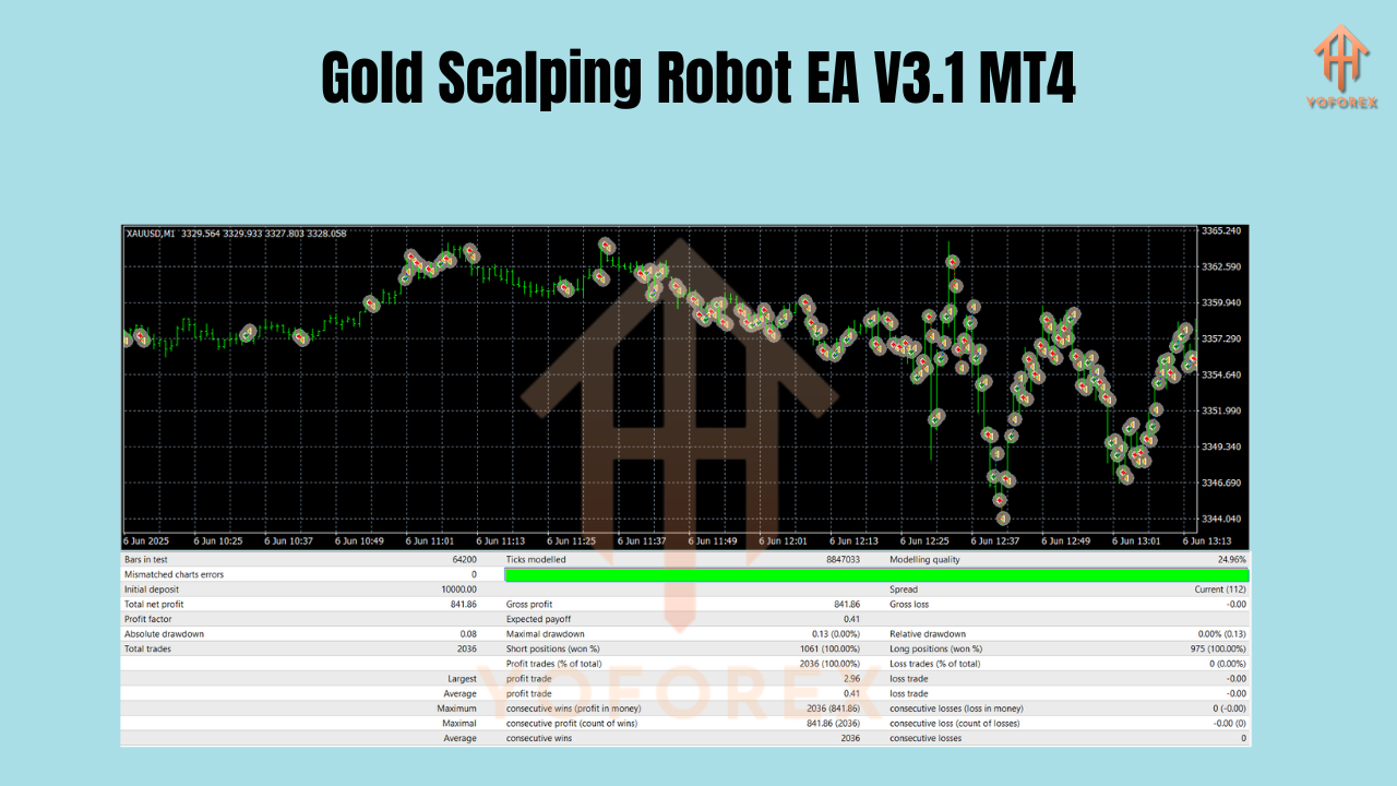 Scalping gold is a game of precision. Every pip counts, spreads can eat profits, and one wrong entry can ruin the day. That’s why YoForex created the Gold Scalping Robot EA V3.1 MT4 — a 100% automated scalping Expert Advisor designed exclusively for XAUUSD (gold) on the M1 timeframe.