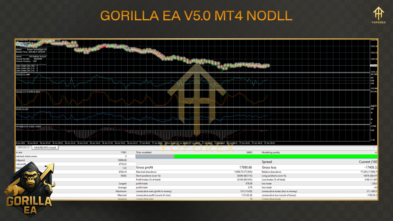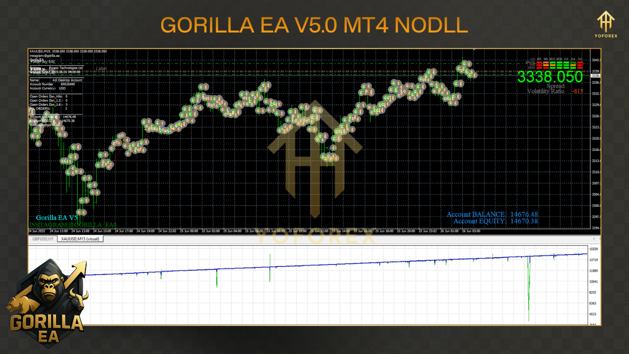 Gorilla EA V5 MT4 is designed for traders craving quick scalp opportunities on major currency pairs and XAUUSD (Gold). It’s fully back-tested on years of tick data, live-verified in real market conditions, and tuned by YoForex’s quants to target small but frequent wins. The EA detects exhaustion bars with customizable candle patterns, enters on momentum bursts, and uses a non-martingale grid-free approach to protect your jungle capital.