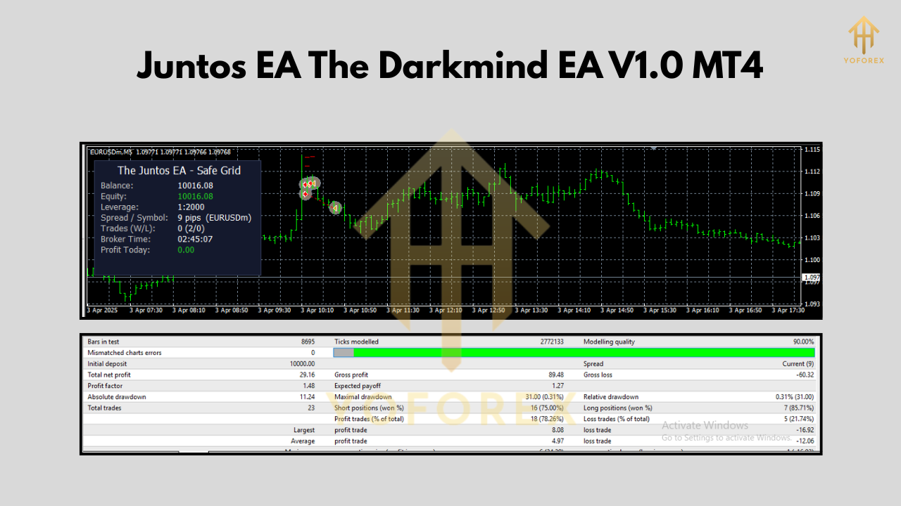 Ever felt frustrated by rigid grid EAs that blow your account coz they can’t adapt to shifting market swings? Juntos EA The Darkmind V1.0 MT4 is here to change that. This grid-based Expert Advisor isn’t just another set-and-forget robot—it’s a smart, risk-aware money manager designed for real-world trading on XAUUSD, USDJPY, and EURUSD. You’ll get disciplined entries, dynamic exit sizing, plus built-in capital protection so drawdowns stay in check. Whether you’re a total newbie or a seasoned scalper, Juntos EA brings together flexibility and safety in one package.