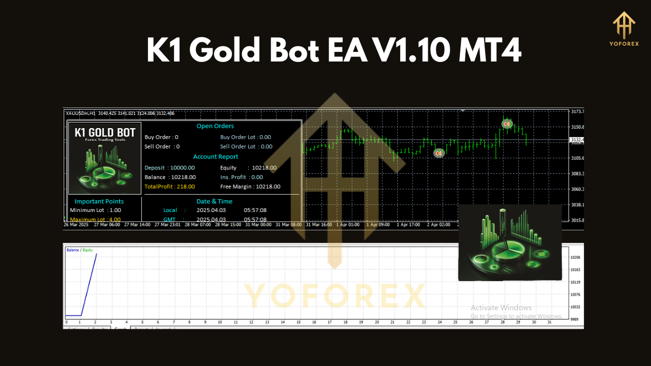 K1 Gold Bot EA is engineered specifically for XAUUSD, using a multi-timeframe approach to capture both short-term scalps and medium-term swings. Unlike one-dimensional EAs, it analyzes higher-timeframe trends to filter out noise, then zeroes in on optimal entry and exit points on lower timeframes. The underlying logic combines volatility filters, dynamic stop-loss adjustments, and profit-target scaling, ensuring that positions are only opened when risk-reward ratios are in your favor.