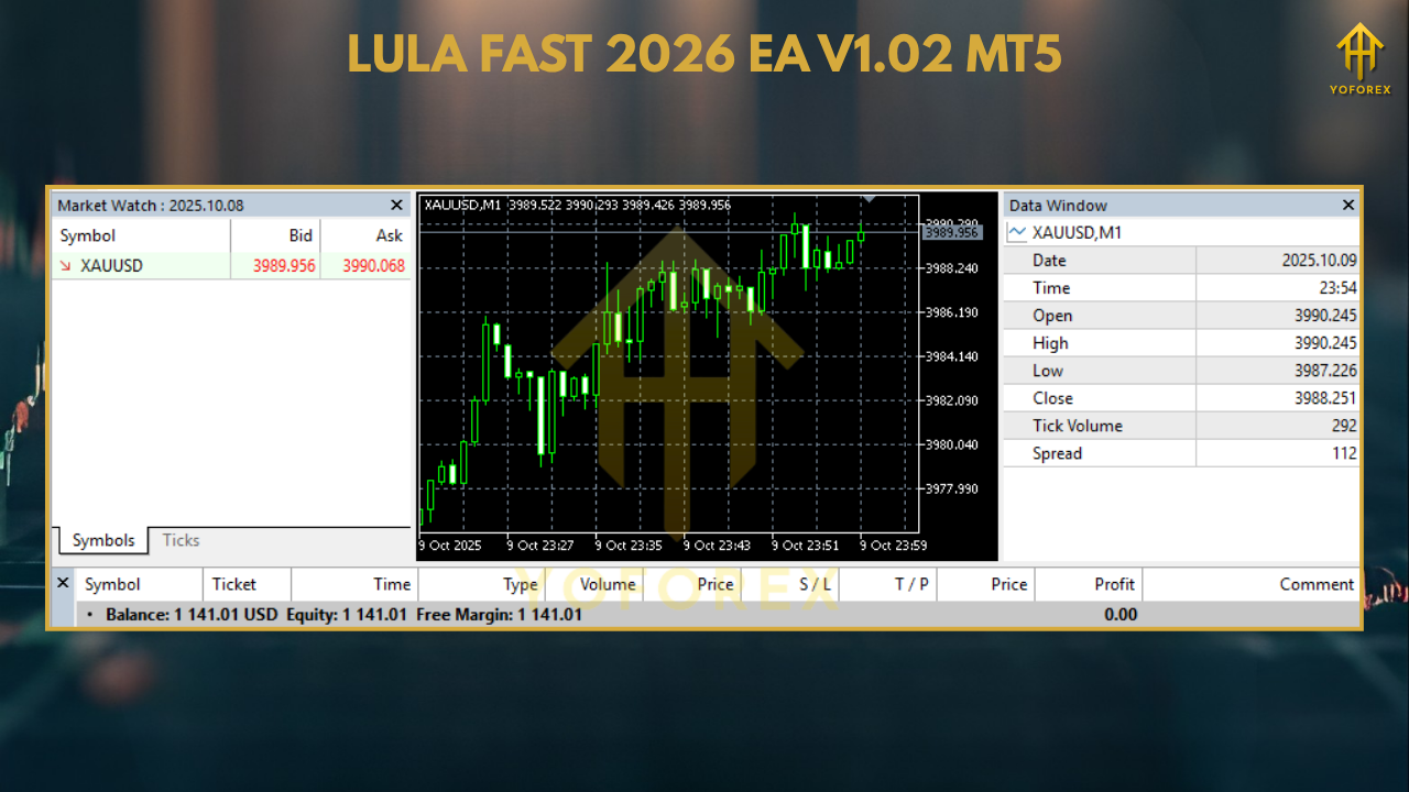 The latest updates ensure that this EA stays ahead of the market, not just fast but intelligently fast, using real-time data processing for the best entries and exits. No more guessing or hoping for profits — LULA FAST 2026 executes with smart precision.