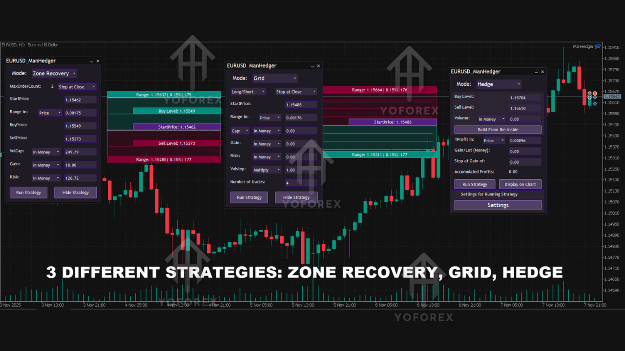 One of the standout features of this EA is its recovery system. If the market moves against your position, ManHedger EA V5.15 MT4 can expand the grid or open additional trades to recover from drawdowns. It automatically adjusts the trading strategy to bring the account back to profitability.