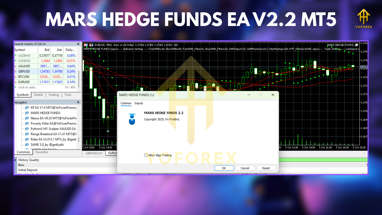 Developed by YoForex’s pro team, this Expert Advisor was built for MT5 users who want serious trading tech — not gimmicks. With multi-layer hedging, adaptive risk control, and AI-based entry confirmation, MARS V2.2 stands out as one of the smartest EAs in the free market.