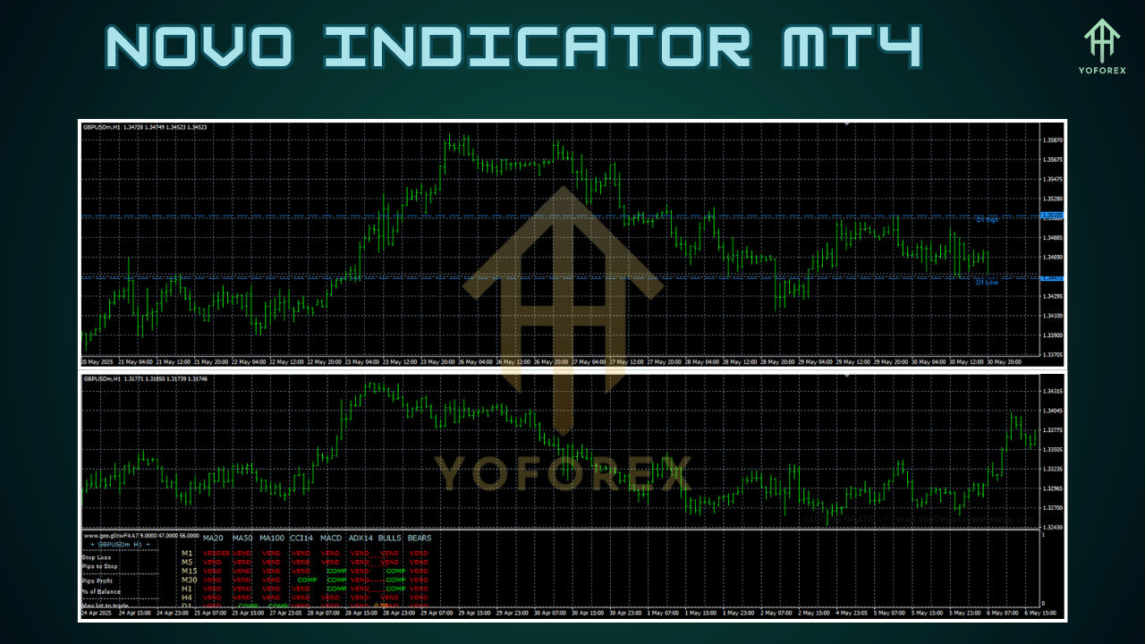 Back-tested extensively on major pairs (EURUSD, GBPUSD, USDJPY, and more), Novo Indicator MT4 has proven its mettle in both bull and bear markets. Live-market testing over the past six months confirms its robustness, with an average win rate exceeding 65% on H1 charts.