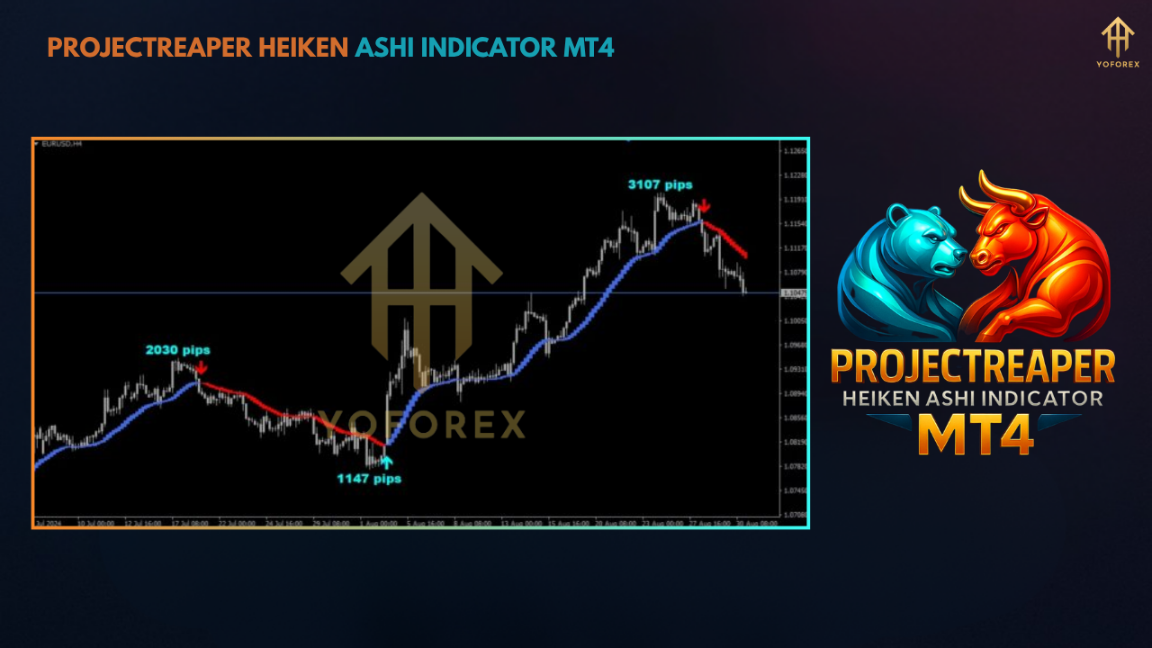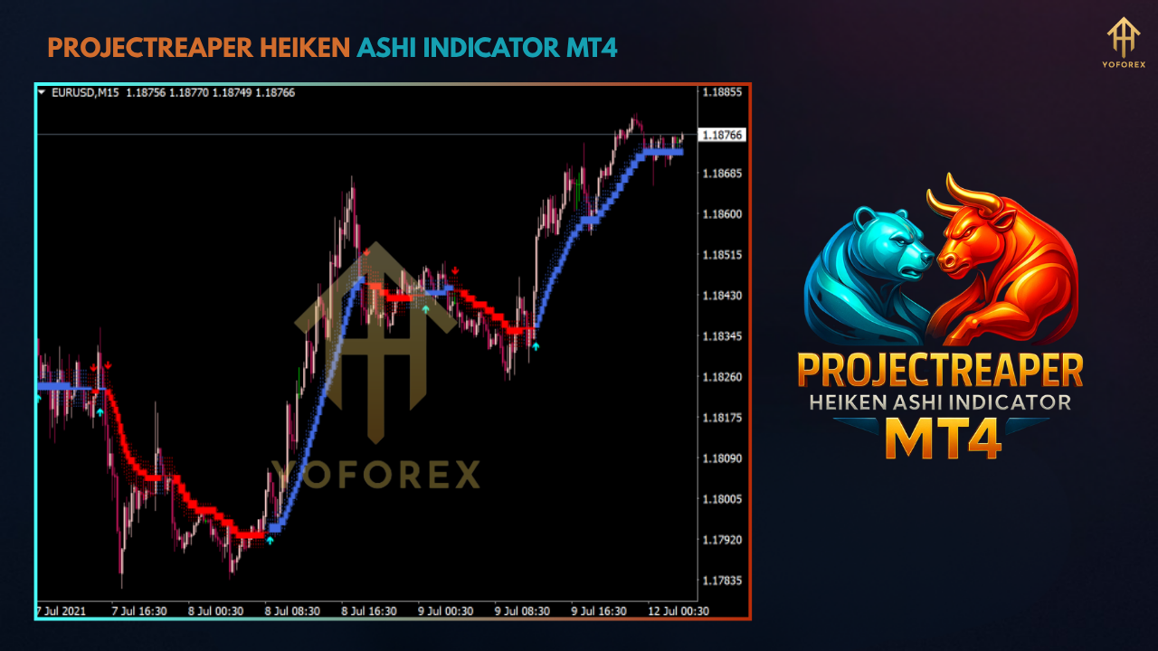 Sick of noisy charts that leave you guessing which way the market’s headed? The Projectreaper Heiken Ashi Indicator MT4 is here to cut through the clutter, giving you smooth, filtered candlesticks that highlight genuine trends…no guesswork required. Built and battle-tested by the YoForex team, this free MT4 indicator takes the classic Heiken Ashi formula and supercharges it with adaptive smoothing and volatility filters. You’ll spot trend reversals sooner, ride stronger moves, and dodge chop-induced whipsaws—all without shelling out a dime for premium plugins. Whether you’re just dipping your toes into MT4 trading or you’ve been around the block, this tool fits seamlessly into your setup and boosts your confidence on every timeframe.
