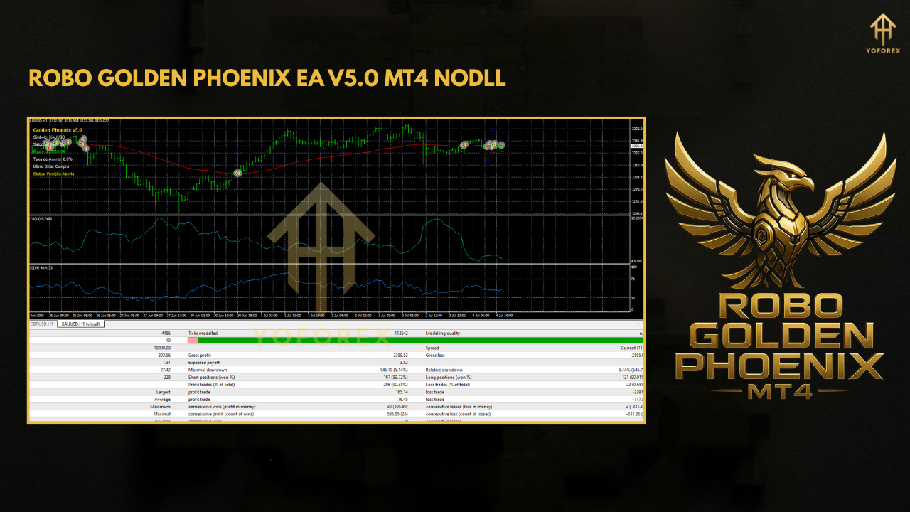 Robo Golden Phoenix EA MT4 is a dedicated gold scalper EA engineered for MetaTrader 4. Built by YoForex’s seasoned quants, it hunts for micro-trends in the XAUUSD market on the M5 timeframe, pinpointing high-probability entries during peak volatility. Its core algorithm blends volatility spike detection, candlestick pattern recognition, and session overlap filters (London/New York) to spot and seize fast moves.