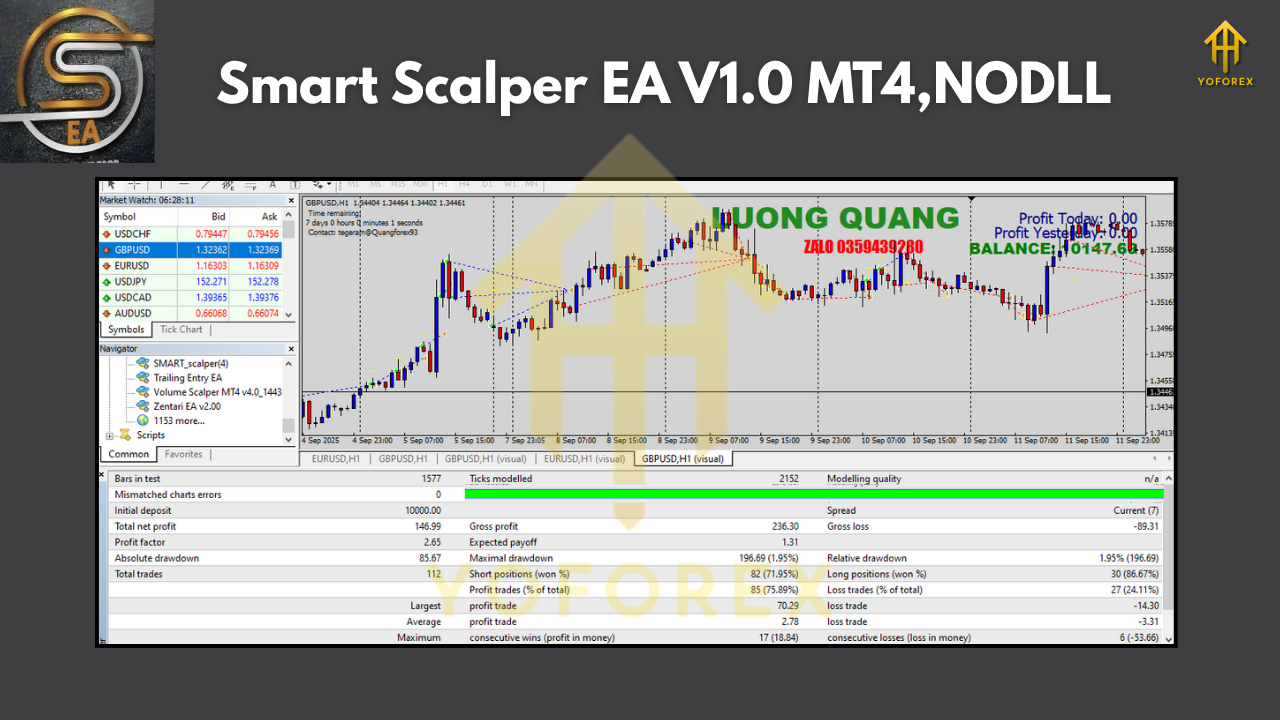 When it comes to automated systems, talk is cheap—results matter. Smart Scalper EA V1.0 has been backtested on real tick data (99.9% modeling quality) over a 5-year period using EURUSD and GBPUSD.