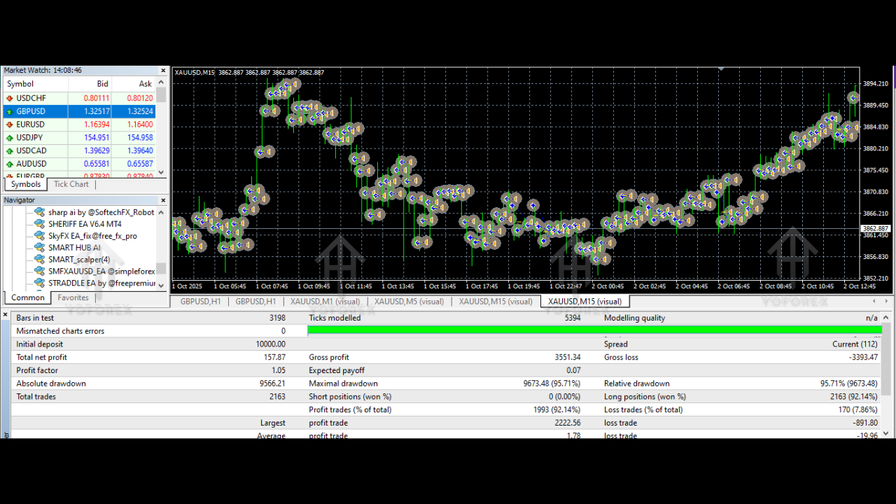 SMF XAUUSD EA follows a highly reactive model. Instead of predicting large trend moves, the EA captures smaller fluctuations in gold’s intraday cycles. Its edge lies in: