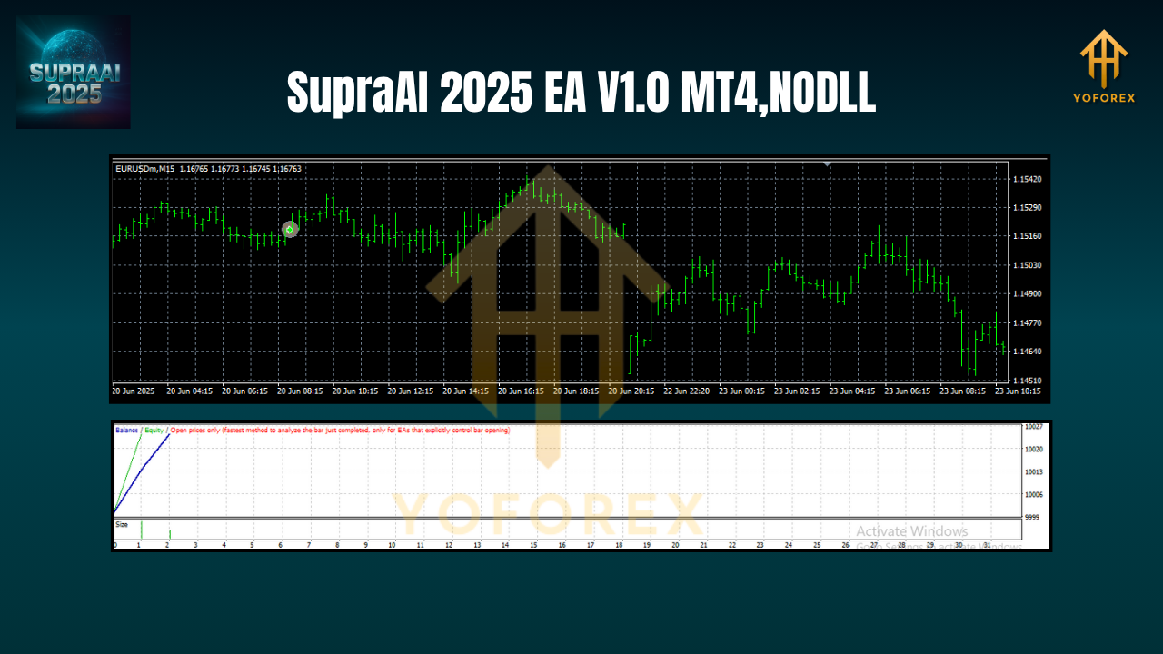 That’s exactly what SupraAI 2025 EA V1.0 MT4 brings to the table. Developed and fine-tuned by the YoForex team, this MT4 Expert Advisor uses artificial intelligence to adapt to changing market conditions, ensuring smarter and more profitable trades.