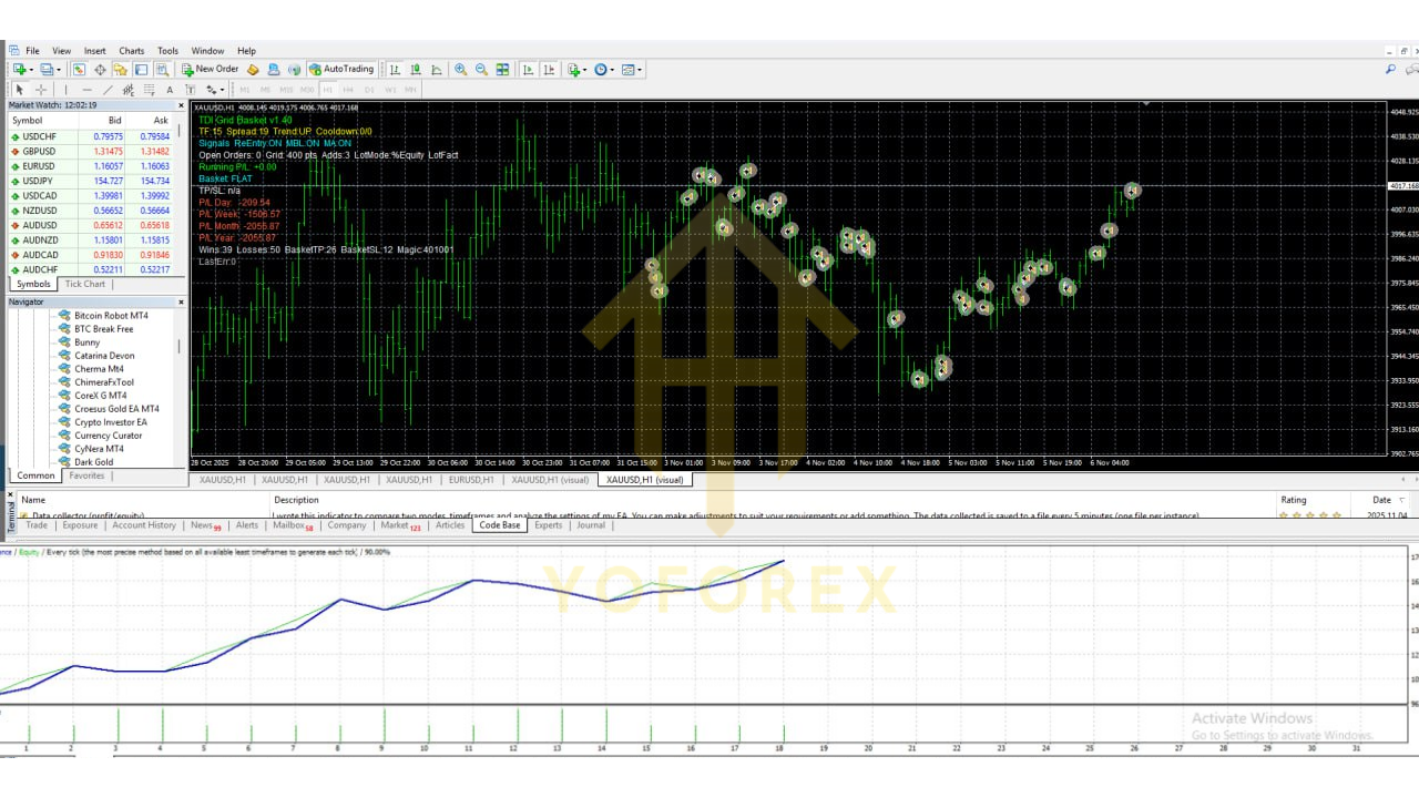Additionally, basket-level profit management simplifies the closing process. Instead of chasing individual take-profits, the EA focuses on the combined profit potential of the entire group of trades.