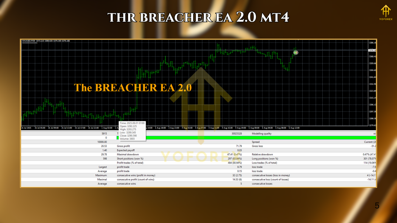 Developed by the YoForex team, The Breacher EA is designed for disciplined traders who love breakout logic but hate false signals. Whether you trade major forex pairs like EURUSD or volatile instruments like XAUUSD, this EA adapts in real time. It filters fake moves, sets smart dynamic stops, and uses session-based volatility mapping to decide when it’s time to strike — and when to chill.