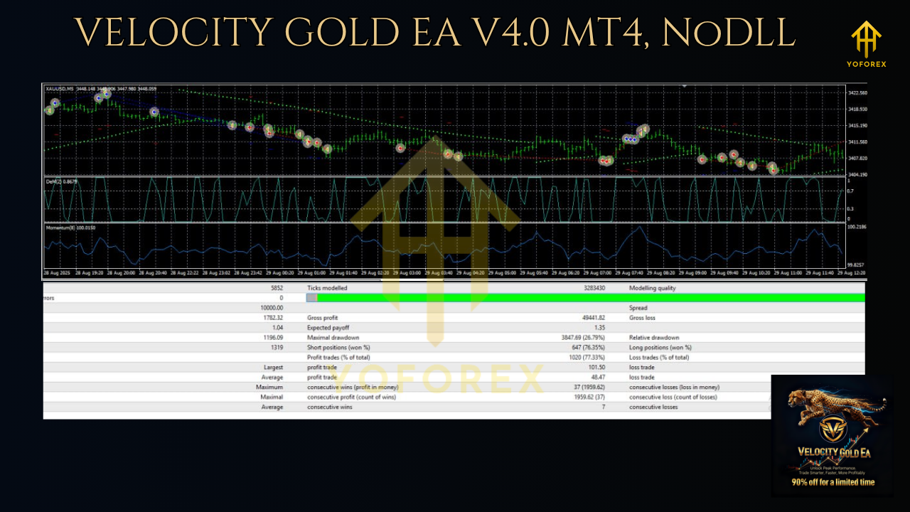 The Velocity Gold EA V4.0 MT4 is not just another automated trading tool; it’s a complete trading ecosystem built specifically for gold. Its algorithm is optimized to read volatility bursts, detect momentum shifts, and execute trades with precision during the most active market hours.
