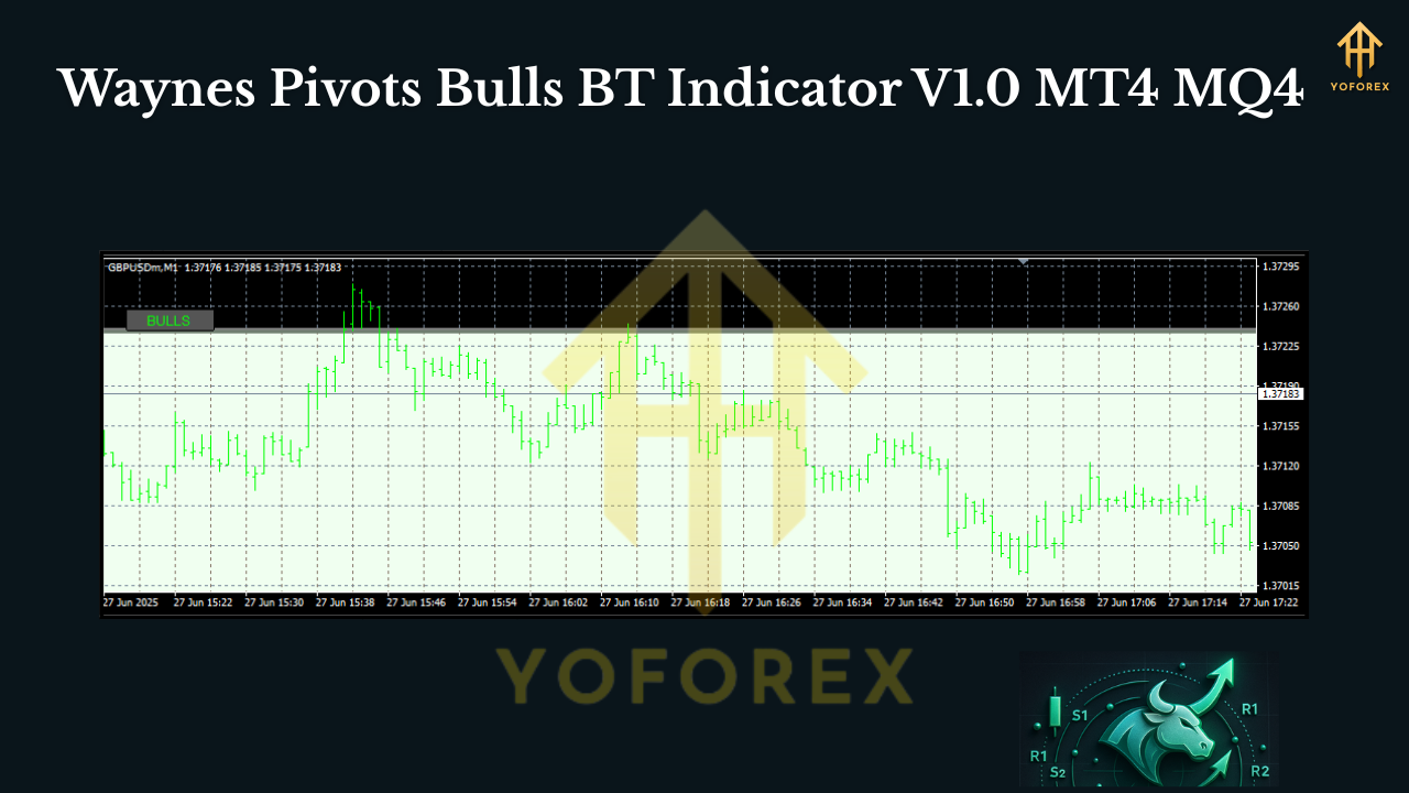 - Attach to chart: Right-click chart → Indicators List → add Waynes Pivots Bulls BT.