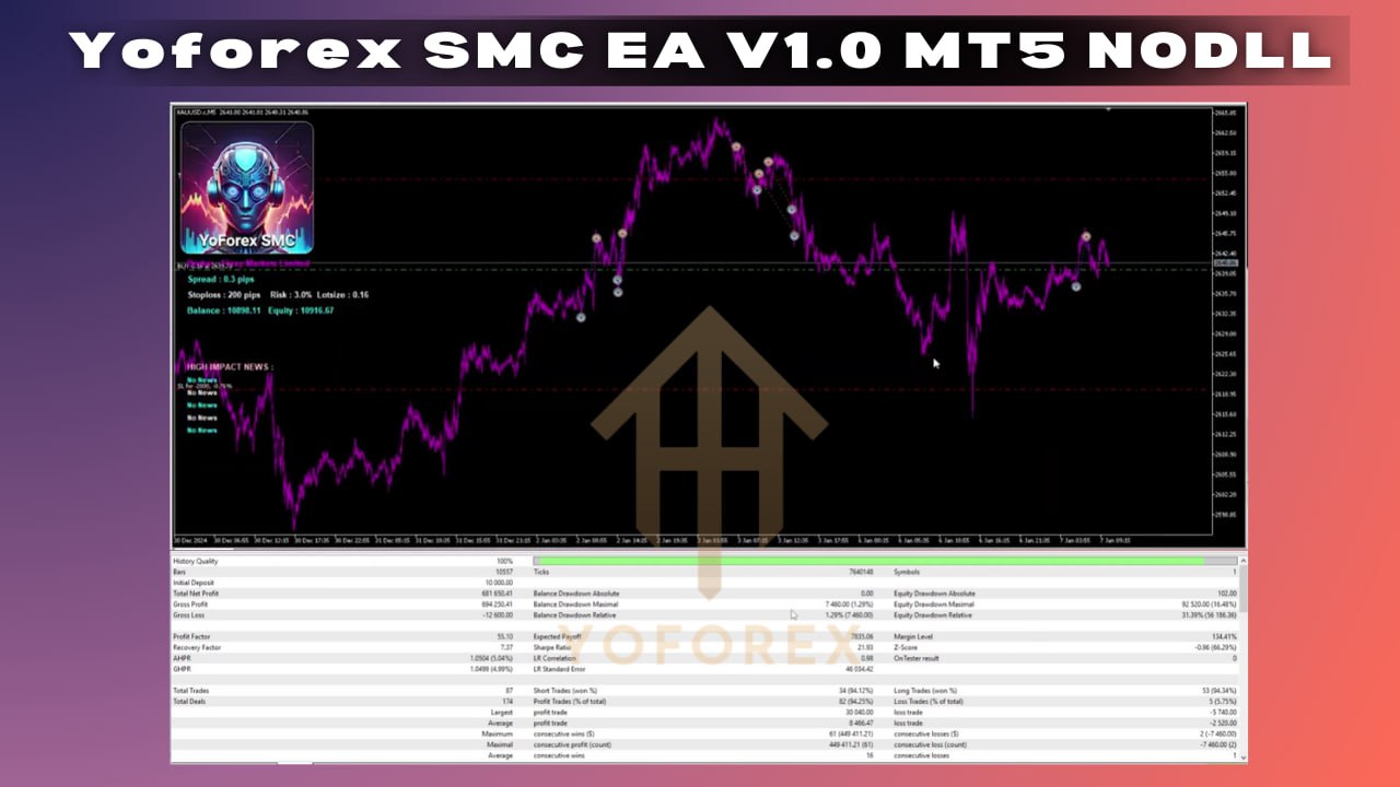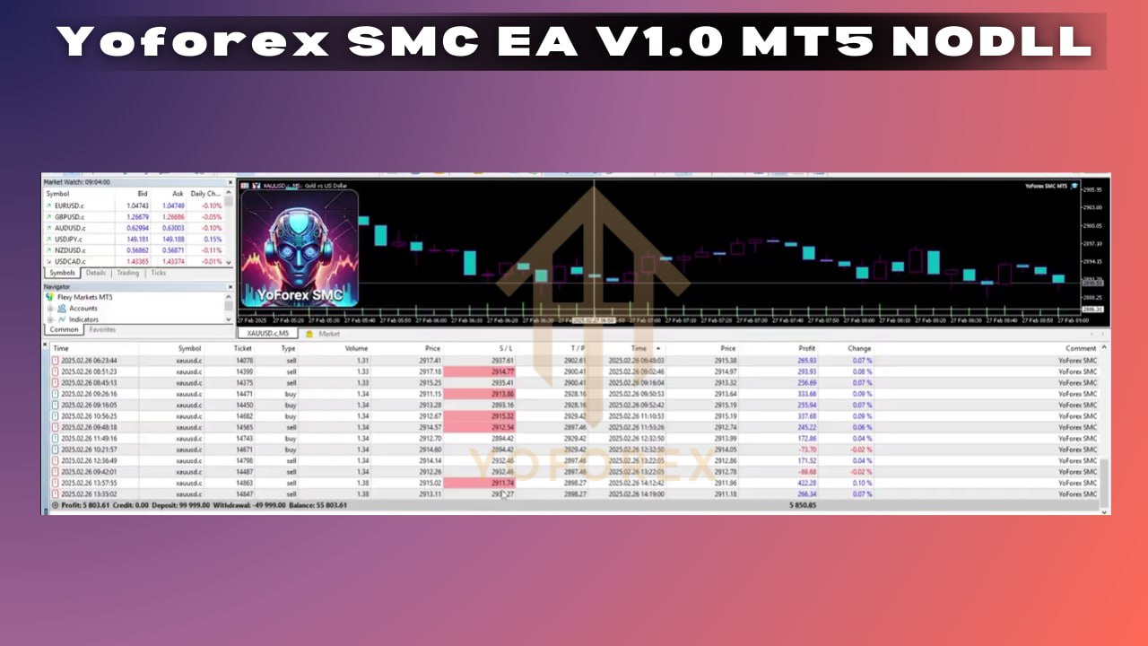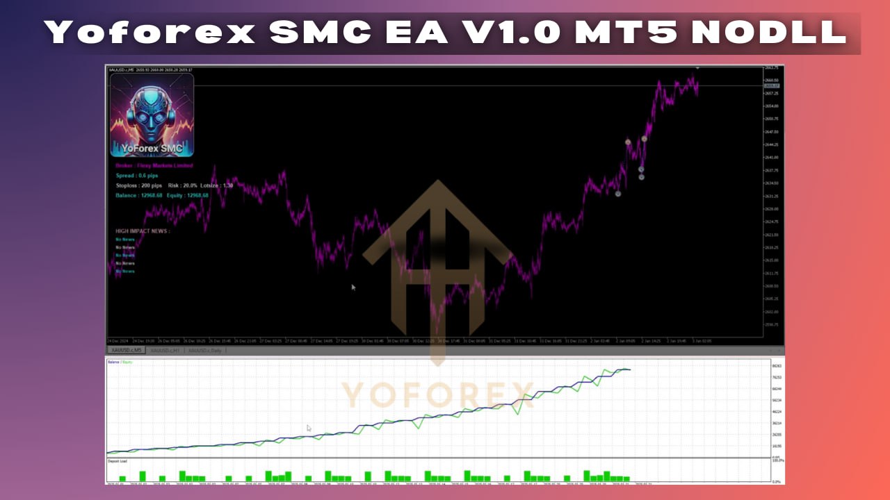 The YoForex SMC EA MT5 is an advanced automated trading system designed specifically for Gold (XAUUSD) traders using MetaTrader 5. It implements Smart Money Concept (SMC) trading principles, a methodology popularized for identifying how big institutions manipulate price action to trap retail traders and accumulate orders.